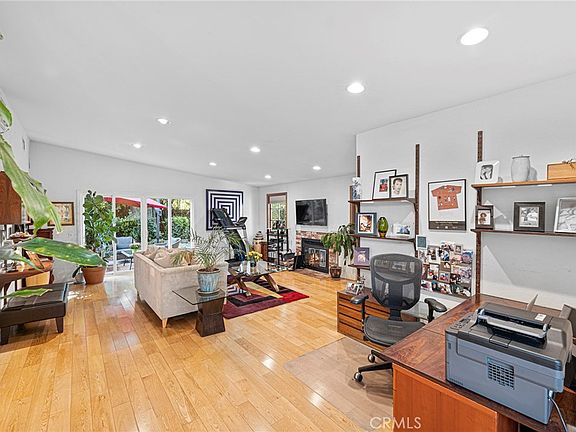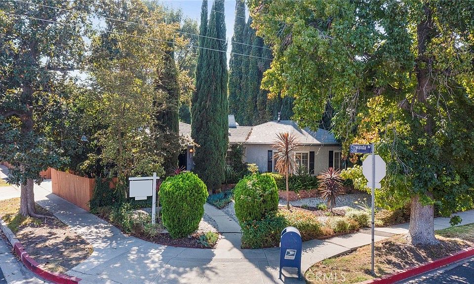 Gorgeous home on corner lot in Tarzana neighborhood. 3 bedrooms plus 2 baths and over 1500 sq.ft. Beautiful hardwood floors, smooth ceilings, dual pane windows, recessed lighting and 3 skylights. This light, bright and airy home offers an open floorplan. Living room and dining room combination. Stepdown family room w/sloped high ceiling, recessed lighting, wood floors, brick wood burning fireplace and slider out to the rear yard. Remodeled granite kitchen with plenty of cabinets and counterspace, a breakfast bar, access to side yard where you can BBQ and enjoy the mature orange tree. Primary suite offers recessed lighting, built in reading lights, privacy shades, TV wall mount set up and a gorgeous luxury spa bathroom. Double shower with 7 shower heads and steam shower optional. Stone dressing table/vanity, double sinks, oversized walk in closet & separate toilet room w/privacy door. Stepdown oversized 3rd bedroom with recessed lighting and mirrored wardrobes. Laundry facilities out in the garage with plenty of storage. The private, peaceful rear yard with mature landscaping offers drought resistant surfaces plus a side yard dog run.