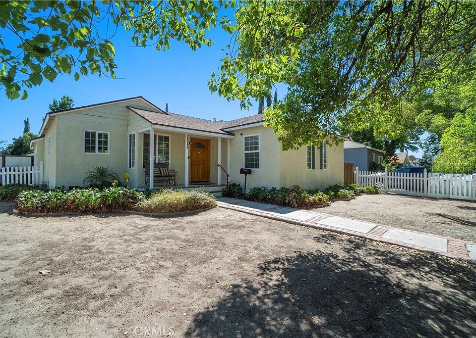 This charming 3-bedroom, 2-bathroom home is a true gem, offering an array of desirable features and modern updates. Step inside to discover beautiful hardwood floors and smooth ceilings throughout, complemented by an open floor plan that provides a spacious and inviting atmosphere. The home is enhanced with recessed lighting and crown molding, adding an elegant touch to every room. The formal dining area flows seamlessly into the well-appointed kitchen, which boasts stunning granite countertops, ample oak cabinets with glass faces, under-cabinet lighting, and a custom wine rack and glass holder. The kitchen is equipped with stainless steel appliances, including a microwave, dishwasher, and oven, along with an inset stainless steel sink and plenty of counter space. The tile floors and recessed lighting complete this culinary space. Step down into the cozy family room, featuring wood floors, French doors, and additional recessed lighting. The primary bedroom is a true retreat, offering recessed lighting, wood floors, and crown molding. The private, remodeled primary bathroom includes a decorative stall shower, a backsplash, an oversized spa tub, recessed lighting, a custom vanity, and alcoves for your bath essentials. The two additional bedrooms also feature wood floors, moldings, and one is equipped with a ceiling fan with lighting. Outside, enjoy the newly replastered pool—perfect for hot summer days. The property also offers RV gates leading from the side yard to the rear yard, a 2-car electric roll-up attached garage, and a gated front yard with vinyl fencing. The low-maintenance rear yard, along with the brick and concrete walkway, provides the ideal setting for outdoor relaxation. This home is a perfect blend of comfort, style, and practicality, making it an excellent choice for anyone looking to enjoy the best of Tarzana living.