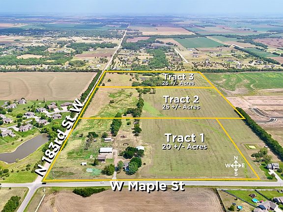 3-TRACT LAND AUCTION OFFERED BY CHOICE – SEDGWICK COUNTY, KS. Exceptional Location in Goddard, KS – Home Site Opportunities - Blacktop Road - Goddard Schools - Development Potential. Join us for a live and online bidding event on Friday, September 20th at 11:00 AM, held at 4105 N Ridge Rd, Wichita, KS (American AgCredit Building). NO BUYER'S PREMIUM. This 71-acre property is being offered in three tracts BY CHOICE. This is a rare opportunity to acquire highly desirable Sedgwick County land near Goddard. Although the land is near Goddard, it has not yet been annexed into the city limits. Whether you are interested in building your dream home on spacious acreage, investing in prime land, or exploring development possibilities, this auction is one you will not want to miss. The property is divided into three tracts: The tracts are as follows: Tract 1 consists of 20 +/- acres, Tract 2 encompasses 25 +/- acres, and Tract 3 covers 26 +/- acres. Tract 1 includes a house built in 1962, with a main floor area of 1,210 +/- square feet and a partially finished basement of 1,056 +/- square feet (528 +/- square feet finished). The home features 3 bedrooms, 2 bathrooms, and a two-car attached garage. The main floor also has a laundry room and a mudroom. Outbuildings on Tract 1 include a metal barn measuring approximately 70' x 30', a detached garage measuring approximately 40' x 24', and designated areas for farm animals. Tracts 2 and 3 feature vacant land with character, including timber and scenic pastures, offering great development potential and home site opportunities. The Seller has directed that no one be permitted to enter or be within 10 feet of the big red barn on the property. The seller requests that a member of the auction company will be present at all showings that are scheduled and approved by the seller and/or auction company. Bidding will be by the acre. The final legal descriptions, acreages, and total purchase prices for each tract will be determined and based off a survey provided by the seller at their expense, to be completed prior to closing. The real estate taxes are to be determined, as the tracts are currently part of a larger parcel. Buyers are advised to thoroughly review the terms and details provided on the online bidding site, as any terms, comments, or announcements made there or at the auction supersede any other advertised material. The property is being sold in its current "Where Is, As Is" condition, without any warranties. Closings will occur on or before 45 days from the full execution of the auction purchase agreements. The successful bidders must immediately execute the provided auction purchase agreement and are required to deposit $50,000.00 per tract as earnest money immediately following the auction. This auction is conducted in person and online through online bidding. The auctioneer reserves the right to recess, adjust and/or extend the bidding time as they deem necessary. Furthermore, the auctioneer may, at their sole discretion, reject, disqualify, or refuse any bid. While all information is deemed reliable, buyers are encouraged to conduct their own due diligence. The sale is not contingent on financing, appraisal, or inspection, and the winning bidder must be available immediately post-auction. The property is sold subject to applicable Federal, State, and/or Local Government regulations, with all measurements and details approximate and non-binding. The auctioneer provides no warranties regarding the online bidding platform's performance and assumes no liability for any bidder-incurred damages during its use, including unacknowledged bids or errors. Bidders accept all risks associated with the platform and acknowledge that the auctioneer bears no responsibility for bid submission or acceptance errors or omissions.
