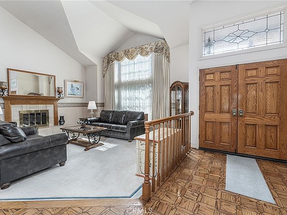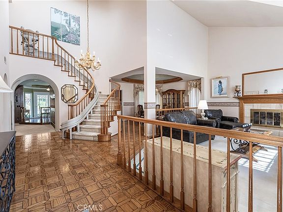 Meticulously maintained Porter Ranch home in "Northridge View Estates" is a spacious 3986sq.ft per assessor. with 5 Bedrooms ( or 4 bdrms+ Bonus Room) and 3.5 baths, and Entertainers backyard with pool and spa, and a 3 Car Garage. Downstairs Guest Bedrm has it's own full bathroom and there is a separate guest 1/2 Bathroom. Gorgeous formal living room has soaring ceilings, a cozy Fireplace, and custom parquet flooring. Step up to a Formal Dining Area with custom ceiling. Gourmet Kitchen has a large center Island, lots of cabinet space, spacious pantry, and an light & open Breakfast Area with motorized window shades. Kitchen is open to the adjoining , large Family Room with custom wood-work, the 2nd Fireplace, and special Bar area. There is an inside Laundry Room with sink and has doorway to direct access to the oversized Garage and built-in storage. Gorgeous curving Stairway has an attached "assist chair" ( that will be removed if you wish). Upstairs are 3 large bedrooms. The "Primary Bedroom Suite" has a sitting area in front of one of the 3rd Fireplaces. Step up to the huge sleeping area and sliding doors to an oversized Balcony overlooking the gorgeous backyard. (This is really special) Going to the Primary bathroom, you walk by a very large walk-in Closet... keep going to a private, light bathroom that has a sepate shower and tub and double sinks and lots of counter space. Another 2 bedrooms are served by a spacious full bathroom with separate tub and shower. The 5th bedroom in this model was a possible loft, but was enclosed at some point and has a closet...and very oversized. Shifting to the Backyard...it is Private, with a fenced in swimer's pool and Spa, grassy lawn areas, several types of fruit trees including orage, lemon, and limes. There is a second, covered patio area on the side yard...also area used as a "hidden Garden" area. The street is a cul-de-sac, The HOA includes access to the 4 community Tennis Courts and basketball area. Also, Park areas nearby. You have to see this home to appreciate all it's features.