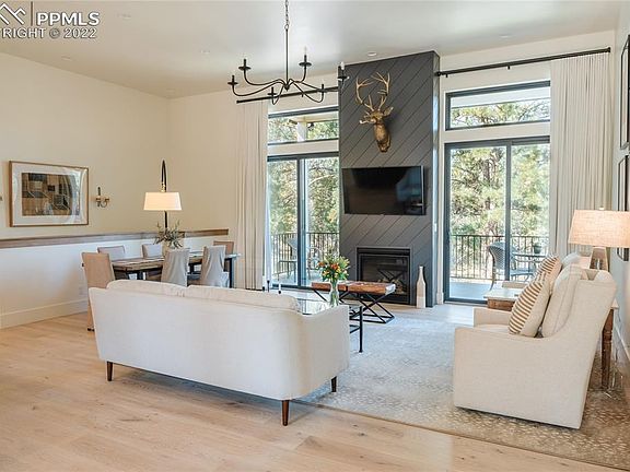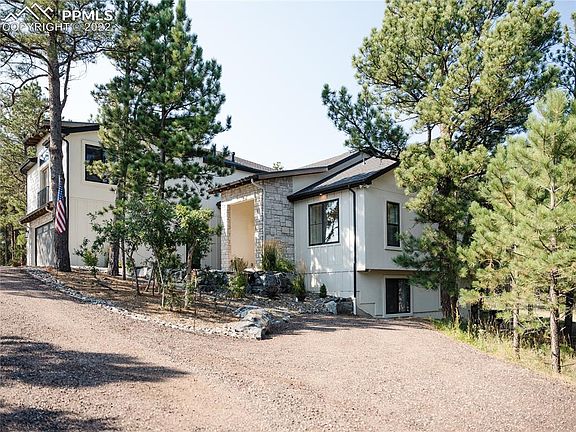 Amazing, one-of-a-kind property with tons of versatility and income potential! Functionality and possibilities abound - make it your new home + in-law cottage, short-term rental (fully furnished & equipped!), family retreat, or multi-generational home. Custom built, modern home on a gorgeous 5.8 acre wooded lot with views of Monument Lake & Front Range. This fantastic location blends the peaceful setting of acreage with close-to-town convenience, less than 5 minutes from I-25! Main home completed in 2018 and is in like new condition, featuring stunning design, exceptional build quality and contemporary fine finishes from top to bottom! This sprawling ranch floorplan w/ 9-foot walkout is appointed with 6 bedrooms & 7 baths. Home is being sold turn-key, fully equipped & stocked areas with all furniture, décor, linens, etc (see exclusions list). Ready to move in and/or STR from day one. Some indoor features include: french oak hardwood floors; soaring ceilings up to 16 feet; five fireplaces; huge Anderson windows; gourmet kitchens with quartz stone counters throughout; luxury baths feature free-standing tub, linear drains, modern fixtures; two laundry rooms; 2 water heaters & 2 AC/HVAC; designer light fixtures; custom millwork; hand textured drywall. Unfinished basement space for another potential 2 beds, large bath & walk-in. Some of the many outdoor features: new luxury treehouse & nest; multiple Trex decks w/ natural gas lines; paver courtyard w/ fountain; gorgeous stream water feature; large main deck with custom fire table; 32x40 metal barn; two entrances to prop w/ crushed asphalt & concrete driveways; landscape w/ irrigation; ample parking & space for RV storage. Fall in love with the charm & ease of this Monument location: hiking, recreational lakes, and mountain living at your back door, while just 5 minutes from shopping, dining & award-winning D-38 schools! Too expansive to capture in listing, so contact agent for all the details, video & materials!