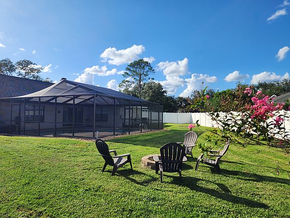 This home is absolutely stunning! Plus you are located right on the culdesac. Outside has beautiful landscaping, a fenced backyard, screened in pool, fit pit and so much more! Inside has many upgrades including modern window treatments, upgraded appliances and fixtures, tile throughout, fireplace, ceiling fans and so much more. There is a well proportioned master bedroom and bath, plus the other bedrooms are nice too! The garage offers shelving for added space. When you think it cant get any better, it does. The pool and backyard is gorgeous. The pool service and lawn care is included.