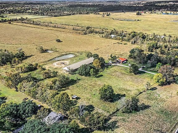 Nearly 50 acres of unrestricted land, not in a flood zone. A 2-story bunkhouse with potential, a Kentucky style pole barn with 15 horse stalls, tack room, and more. Frig included, with water available in multiple locations. Morgan storage building on site. Septic system, deep well, and 2 ponds. Fenced for horses or cattle. Horse walker included. Excellent air flow design in barn. A property with endless possibilities.
