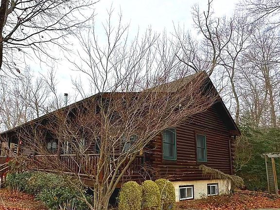 Nestled on 10 acres of untouched land, this charming log cabin is the perfect retreat for those seeking peace and privacy. Spanning 3,000 square feet, it offers four cozy bedrooms, office space, sunroom and two full bathrooms, ideal for families or entertaining. A large front porch invites relaxation while soaking in the natural beauty. Tucked away on a private road, this home ensures seclusion and tranquility. Inside, a warm, rustic ambiance awaits, with an open space living room perfect for cozy evenings. The spacious finished basement provides ample storage or potential for additional living space, while the expansive lot offers endless outdoor opportunities. A workshop is also included, making this property a true haven for nature lovers and hobbyists alike. No smoking/vaping inside. Don't miss the chance to call this beautiful property home!