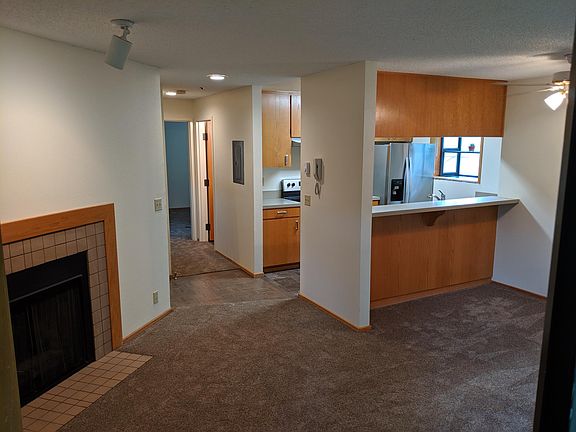 (FOR RENT) Secured building with 1 assigned covered parking. This 1 bedroom unit has a woodburning fireplace, full-sized washer/dryer. Deck has storage and an additional separate storage. Water/Sewer/Garbage included in rent.