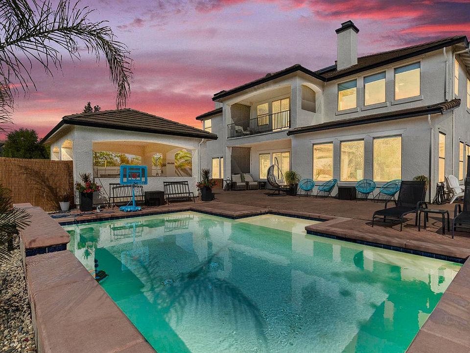 Welcome to your private oasisin the exclusive Wild Wings Golf Course Community. This 5,442sq.ft., contemporary estate, extensively remodeled in 2024, blends modern sophistication with luxurious comfort. A grand rotunda and sweeping dual staircase with custom black iron railings set a dramatic tone upon entry. The designer kitchen features an oversized quartz island, stainless-steel appliances, floor-to-wall cabinets, and a spacious walk-in pantry. Formal living and dining areas offer elegant entertaining spaces with soaring ceilings. The main level includes a junior suite ideal for guests or multigenerational living, plus a versatile flex room perfect for an office or gym. The primary retreat boasts a custom walk-in closet and spa-inspired ensuite with marble accents, black quartz counters, a frameless shower, and jetted tub. Two lofts with balconies and Jack & Jill bedrooms provide flexible living options. Outdoors, enjoy a resort style pool, cabana, and stunning golf course and mountain views. PAID solar. Minutes from Davis, Winters, and Seka Hills.