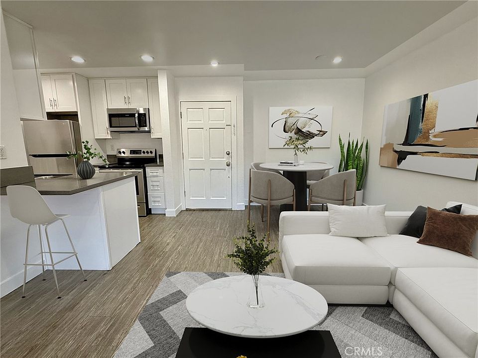 Welcome to this stylish 1-bedroom, 1-bath condo in the heart of Tarzana, tucked inside a well-maintained gated community. Thoughtfully updated in recent years, this home combines modern finishes with everyday comfort. The kitchen features sleek quartz countertops and newer appliances—including refrigerator, electric stove, dishwasher, and microwave—while recessed lighting, quality flooring, and mini-split A/C units in both the living room and bedroom ensure year-round comfort. The spacious bedroom offers mirrored closet doors plus an additional large closet with French doors, and the bathroom highlights a contemporary tile shower/tub with sliding glass doors. Step outside to your private balcony to enjoy peaceful treetop views of the pool and spa. Community amenities include a sparkling pool, spa, recreation room, laundry facility, elevator, and two tandem parking spaces, all surrounded by vibrant landscaping. With easy access to the 101 Freeway, Tarzana Square Shopping Center, Whole Foods, Coffee Bean, and local dining spots, this home is the perfect blend of convenience, comfort, and value—an excellent opportunity for first-time buyers or investors.