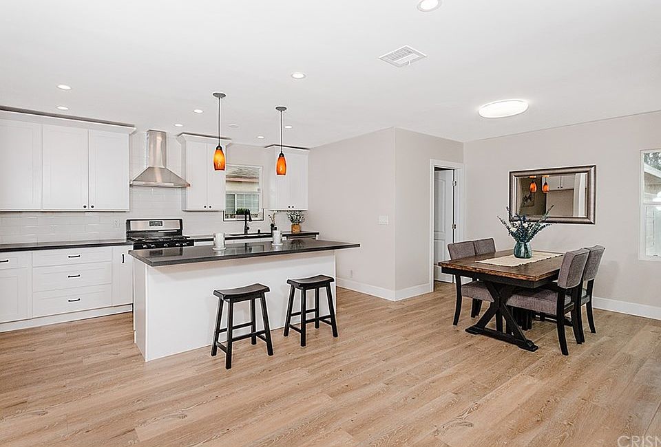 Welcome to your new home. Tastefully remodeled 3 bedrooms plus 2 baths single story home with a Chef's Kitchen. The kitchen features a quartz island that's perfect to be used as a breakfast bar or entertaining. Quartz counter tops, new soft close cabinetry & a beautiful open floor plan. This home has a true master suite which includes a his "n" hers closet & a gorgeous bathroom w/dual sinks to complement it. Some other features include new beautiful wood laminate, new windows, recessed lighting, stainless steel appliances, new roof, 2 car attached garage w/direct access, laundry facilities, new tile in both bathrooms & much more. Come see this beautiful home, it is truly something to be excited about.