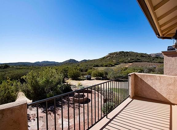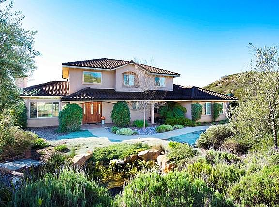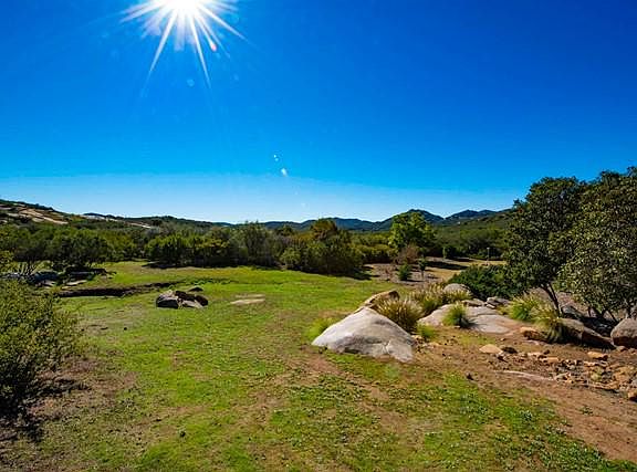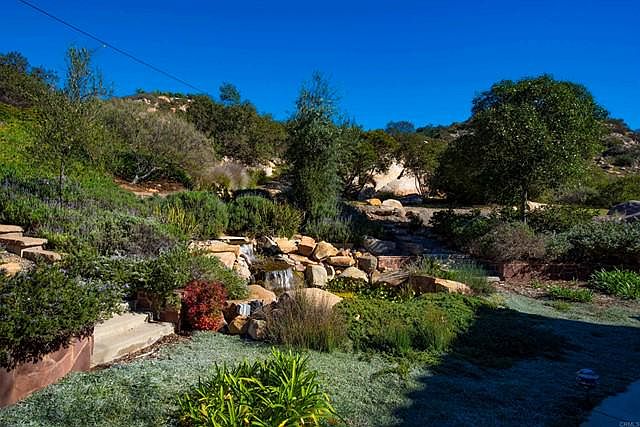 For those who appreciate quality. West end Ramona in a private, park like setting with a waterfall and pond entrance on over 4 acres with spectacular rock formations. Enjoy a higher standard of living in this executive style 4 bedroom home with 9 foot and coffered ceilings. Entertainers, eat-in, island kitchen with granite counters, stainless appliances, pantry, gas stove. Spacious master suite with private balcony, walk in closet, and double sided fireplace to luxurious master bath with jetted tub and separate shower. Living room, dining room and great room design with kitchen and family room featuring distinctive fireplace. Covered back deck and flagstone patio with large firepit. 3 car attached garage and tons of parking.