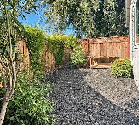 Lovely wraparound yard including large Exterior Storage Shed and new gate