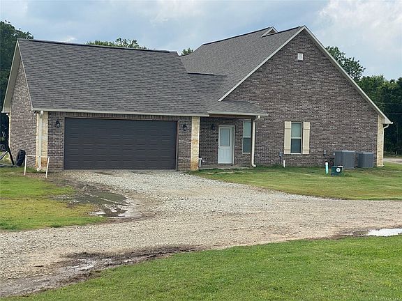 Extra nice 4BD/2BA 2 story home on 26+ acres. Built in 2018, this gorgeous home has an open floor plan, formal dining room, abundant cabinet space, granite counter tops throughout, split bedroom plan, large owner suite and bath, gas fireplace, upstairs second living area or game room for the kids, nice size utility room and 2 car garage. Property offers one pond, pasture and trees and seller has frame built for shop. Located near Lake Eufaula and short distance to McAlester. Come see this one today!!