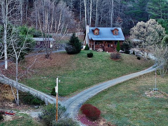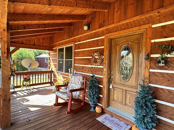 Welcome to your mountain oasis in beautiful Fries, VA. This 16 +/- acre farm has it all: 3 br/3ba hand hewn log home, front porch views of Elk Creek, large fenced in garden area, pasture area with Knob Fork running through the middle and 14 X 32 workshop w/ garage door. Beautiful log home features a full walk-out basement with kitchen, gas fireplace, full bath and laundry. Main level features gas log fireplace, primary bedroom, full bath, kitchen with gorgeous hickory cabinets, breakfast room and covered front & back porches. Upper level features 2 bedrooms, full bath and loft area. All appliances convey including w/d and all basement appliances. Hardwood flooring throughout main and upper level.