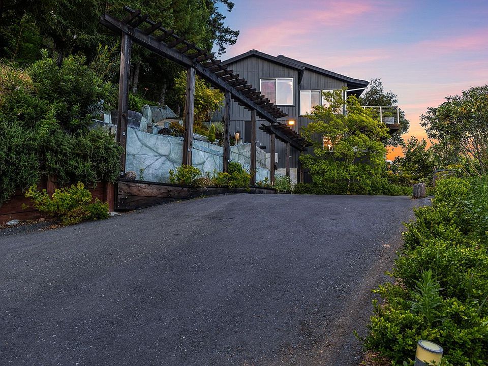 Tucked high above the Russian River Valley, just minutes from downtown Healdsburg, this Fitch Mountain gem offers elevated living with expansive Russian River views. Sunlight pours into the open spaces where clean design meets smart technology, and multiple decks and patios extend the living experience into the open airperfect for morning coffee, sunset wine, or inspired work-from-home days with vineyard and river vistas. This modern retreat is powered by a Tesla Solar Roof with multiple Powerwalls, a backup generator, and an EV charger for true energy independence. Smart-home features include Google security cameras, DoorBird smart doorbells, Crestron thermostats and locks, Nest smoke alarms, and Lutron motorized shades on the main level. Comfort is ensured with a high-efficiency heat pump, whole-house water filtration, newer gutters, and drip irrigation for easy care. Enterprise-level networking provides seamless connectivity. A wraparound deck connects the dining, kitchen, and primary suite, while a dedicated gym with floor-to-ceiling mirrors creates a professional workout space. Designed for those who value peace, privacy, and precision, this home feels like you're not just living in Healdsburgyou're soaring above it.