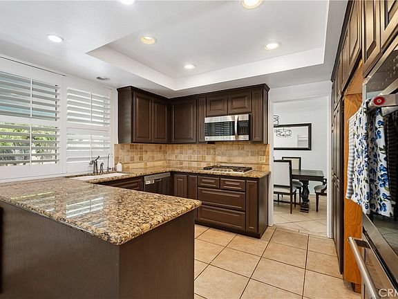 Welcome to your dream home! This beautiful 4 bedroom, 3 bathroom home is perfect for relaxation and entertaining. The living space features tall ceilings, creating an open and inviting atmosphere. The main level also includes the dining room connected to the kitchen, a cozy step-down family room with a fireplace, and a bedroom with a full bath. Upstairs, you'll find the primary suite and two additional bedrooms with access to a patio above the garage and a full bathroom. On hot summer days, cool off in the saltwater pool and spa. Enjoy outdoor living with a built-in barbecue grill, bar, and fireplace, perfect for entertaining friends and family. The prime corner lot offers extra storage space and RV parking. Don't forget about the easy access to freeways and convenient shopping, plus the community pool & clubhouse! Additional features include central air and heating, solar panels to reduce utility costs, a water softener system, and a kitchen water filtration system. Don't miss this amazing opportunity!