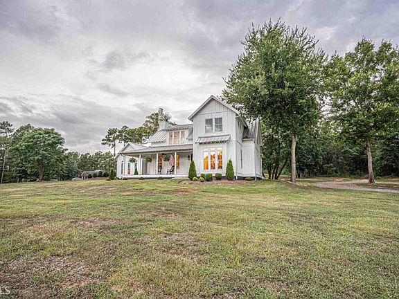 WOW!! This Remarkable 3 bed/2.5 bath Custom home on 9.5+ Acres will check all your boxes!! Every immaculate detail has been meticulously chosen, from the elegant windows that bring in ALL the glorious natural light to the Heart Pine floors to the grand Masonry Fireplaces made for cozy nights and entertaining- this exquisite home is filled with charming details and space for everything you have in mind! Highlights include an open floor plan with a gorgeous white kitchen with stainless appliances, white granite counter tops, wine cooler, double oven, and custom island with additional seating. The intimate, yet spacious dining room seats 10+. The lovely living room is complete with awe-inspiring vaulted ceilings, built in shelves, cabinets, and a beautiful masonry fireplace. The comfy, cozy outdoor veranda is completely covered with a Masonry fireplace. The elegant Master Suite is cozy with beautiful vaulted ceilings and features his and hers closets, his and hers vanities, large soaking tub and tile shower and water closet. Beside the Master Suite, you will find an office/hobby room/kids playroom. Upstairs, there is a seating/kids play area and two additional bedrooms + a large bathroom. Outside you have 9.5 private Acres with a shop & small outbuilding, trails that go throughout the property and a beautiful landscape. This home also has a waterproof heated and cooled crawlspace and foam insulation! This exquisite home is an absolute MUST SEE!