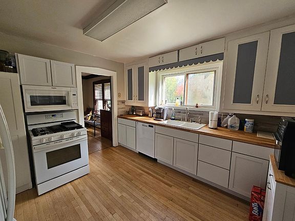 Selling this 4-bedroom, 2-bath home with recent first & second-story bathroom remodeling and a remodeled kitchen offers a lot of potential for a buyer. The property's location just outside the city limits provides a suburban setting while maintaining easy access to urban amenities. One standout feature is the private septic and well, which can reduce utility costs and offer self-sufficiency. The nearly one-acre yard has a fenced in garden area, one-car detached garage, shed and room for outdoor activities. The full basement provides ample space for storage, hobbies. There are hardwood floors throughout the living room and dining room and most of the appliances are newer. The screened-in porch is a great addition, perfect for enjoying the outdoors without worrying about pests. Some potential buyers might appreciate the convenience for those who enjoy socializing, entertainment, or grabbing a drink without having to travel further than across the road. Property is zoned General Use.