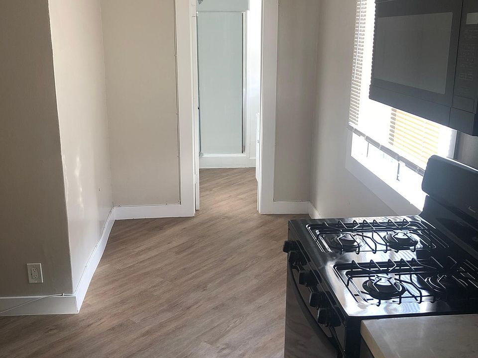 This is a bright unit with plenty of light on all sides. Hardwood floors extend throughout. The kitchen is quite spacious for a studio and includes a brand new stove and microwave. There is good amount of closet space and a ceiling fan to keep you cool. The apartment has washer and dryer on site.