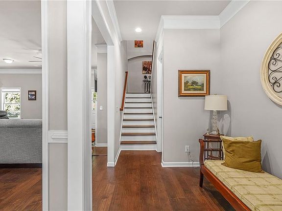 Almost new and impeccably maintained home nestled in a quaint community in Stone Mountain. Perfect in every way, this home has curb appeal that just begs you to come inside. A covered front porch and entry door offer space for seating and for your seasonal d cor and personality can be displayed. The foyer greets you and the open floor plan with 10 ft ceilings on the main level immediately feel welcoming and comfortable. The separate dining room is flooded with light from the front windows and the coffered ceiling gives this room an upgraded touch. The family room and kitchen flow well for entertainment and relaxing at home with loved ones. Seating at the bar offers space for conversations or casual meals. Granite countertops, the spacious island, 42" cabinets, stainless appliances and a nice sized pantry are the finishing touches on this space. On the main level there is also ample storage, a powder room and access to the 2-car garage. Stained wood handrails and wood stair treads lead upstairs where you will find 2 spacious rooms and a shared hall bathroom. Further down, there is an oversized laundry room with shelving for storage and at the end of the hall, the Primary Suite. This room is more than large enough for a comfortable king bed and to sneak in a sitting area by the window for winding down. There are dual walk-in closets and a fully appointed en suite bathroom with a separate soaking tub and shower and dual vanity. The quaint yard is fenced for privacy and easy to maintain. It features an oversized patio, hot tub, and raised garden area with a fire pit. This home is in pristine condition and completely move in ready. This home is a truly phenomenal value with lots of bells and whistles for the price.
