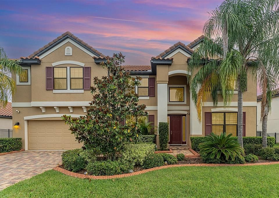 Stunning 6-Bedroom Luxury Home with Pool & Pond Views Welcome to your dream home! This 5,454 sq. ft. masterpiece offers 6 bedrooms, 4 full baths, and 2 half baths, perfectly designed for both privacy and togetherness. Enjoy the rare luxury of two primary suites—one on the first floor and one upstairs—ideal for multigenerational living or accommodating guests. The chef’s kitchen features a double oven , a pot filler and extended countertops and custom-built cabinets, flowing seamlessly into the great room with breathtaking views of the sparkling pool and peaceful pond. Entertainment is a breeze with an expansive game room complete with a wet bar, island, and wine fridge, plus a media room with its own tech storage closet. A spacious utility room and thoughtfully designed layout ensure every need is met. Step outside to your private oasis with a completely screened in relaxing pool/ spa or upstairs balcony with scenic pond and lake views, or enjoy the amenities of the secure gated community—tennis courts, playground, community pool and spa, pickleball and basketball court, fitness center and clubhouse. This home has it all: space, style, security, and comfort. Don’t miss this opportunity—it’s waiting for you! Seller is offering $500 home warranty as well as $5000 seller concession towards painting and extras.