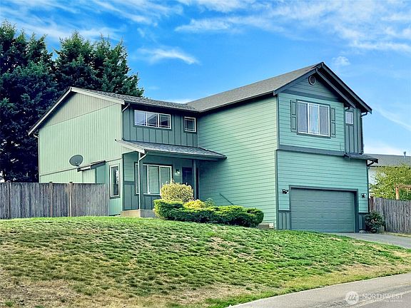 4 Bed, 2.5 bath home on a large lot with a backyard that's a true retreat! Main level features family room & living room with bamboo floors, dining & kitchen combo with center island, pantry, & sliding doors leading to rear yard. 4 bedrooms upstairs including a large primary bedroom with dual walk-in closets and a private bathroom w/ soaking tub, shower, & double sinks. 2 other bedrooms have walk-in closets. Backyard includes patio, hot tub, firepit, rock pathways & room for gardening or custom landscaping. Heat pump w/ AC, new roof w/ 50-yr shingles & transferable warranty, smart garage door, & Ring cameras/doorbell. Spacious 2-car garage w/ driveway & street parking. All bordering a peaceful greenbelt for extra privacy.