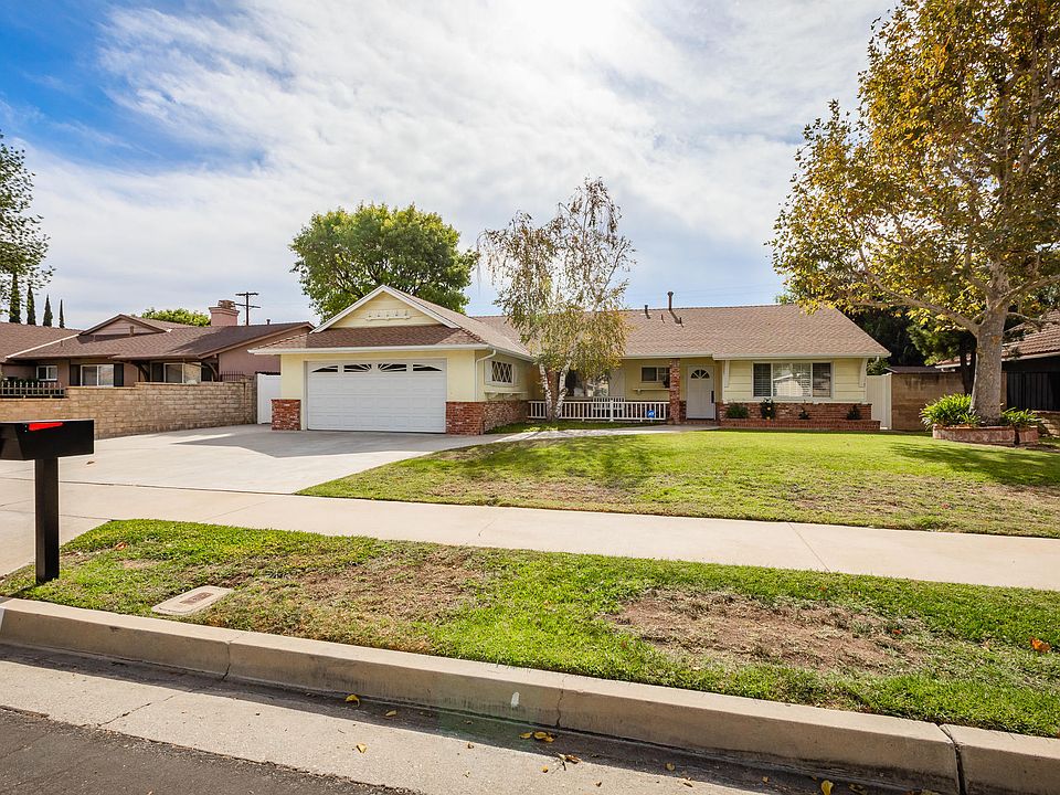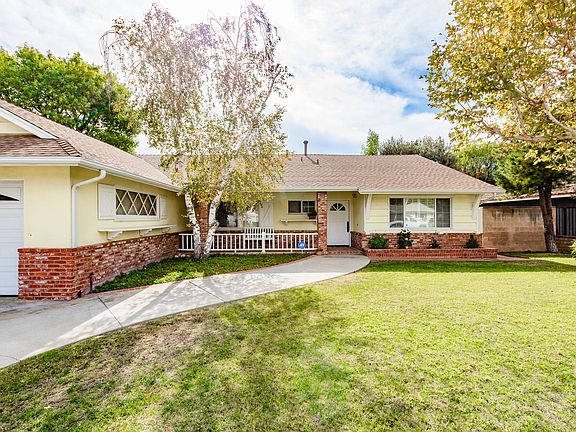 Ranch style single story home with alluring curb appeal! From the moment you arrive you are greeted with lush greenery, stunning curb appeal and brick accents letting you know that you have stumbled upon something special. This 3 bedroom move-in-ready home offers an additional detached 2 car garage with loft, perfect for a home shop or extra storage. This additional detached garage can be easily converted to an ADU providing additional income. As you enter, warm natural tones and beaming natural light welcome you in this spacious home. Custom crown molding, plantation shutters, recessed lighting, with freshly cleaned carpet provide a space of luxury and comfort. Stunning travertine flooring guides you to family space that is open and has direct access to the backyard. The rustic kitchen provides plenty of space and storage to meet all your culinary needs, with brick-like flooring, tile countertops and real wood cabinetry, this kitchen is ready for your immediate use. The cozy family room is enhanced with shiplap additions, brick fireplace with mantle and large sliding doors allowing the natural sun and beauty of the backyard to beam throughout the living space. The convenient laundry space offers additional storage and easy access. The large master ensuite is spacious and provides a place of peace and serenity with a remodeled bathroom with tile flooring, gorgeous stand alone shower and new vanity. Enjoy the large backyard, with mature landscaping, covered patio and plenty of space to host all your summer bbqs. Upgrades include newer roof, AC & heater, back fence, rooter mainline and ATD security system. Close to shopping and within the highly desirable Granada Hills Charter High Schoo District. Don't miss out on this move-in-ready home with a rare additional garage that is sure to make all your guests jealous! This property will GO FAST!