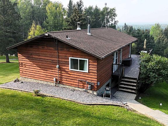 Stunning mountain views can be enjoyed right from the main living area or while sipping your morning coffee on the expansive 479 sq. ft. wrap-around deck. Just minutes from town, this property has been beautifully landscaped with rock and flower gardens, mature trees, a garden area, and natural growth that enhances the peaceful setting. The home itself has been lovingly updated and offers an inviting main floor with bright living space, two bedrooms, and a 4-piece bathroom. The fully finished walk-out basement adds even more living area with a spacious family room warmed by a wood stove, large primary bedroom with a 3-piece ensuite, a generous laundry room, and plenty of storage. Extensive renovations and modern upgrades have been completed, providing comfort and peace of mind for years to come. The home has seen some new windows and doors, fresh paint, flooring, and lighting, as well as central A/C, an energy-efficient furnace, shingles, and hot water tank updates. The heated 28x22 garage features upgraded man and overhead doors with new openers, while outside you'll find a woodshed with attached tack shed. Additional features include reverse osmosis water, a recently serviced septic system, and annual road lease income of approximately $1,400. This property offers the perfect balance of natural beauty, functional living space, and modern convenience.