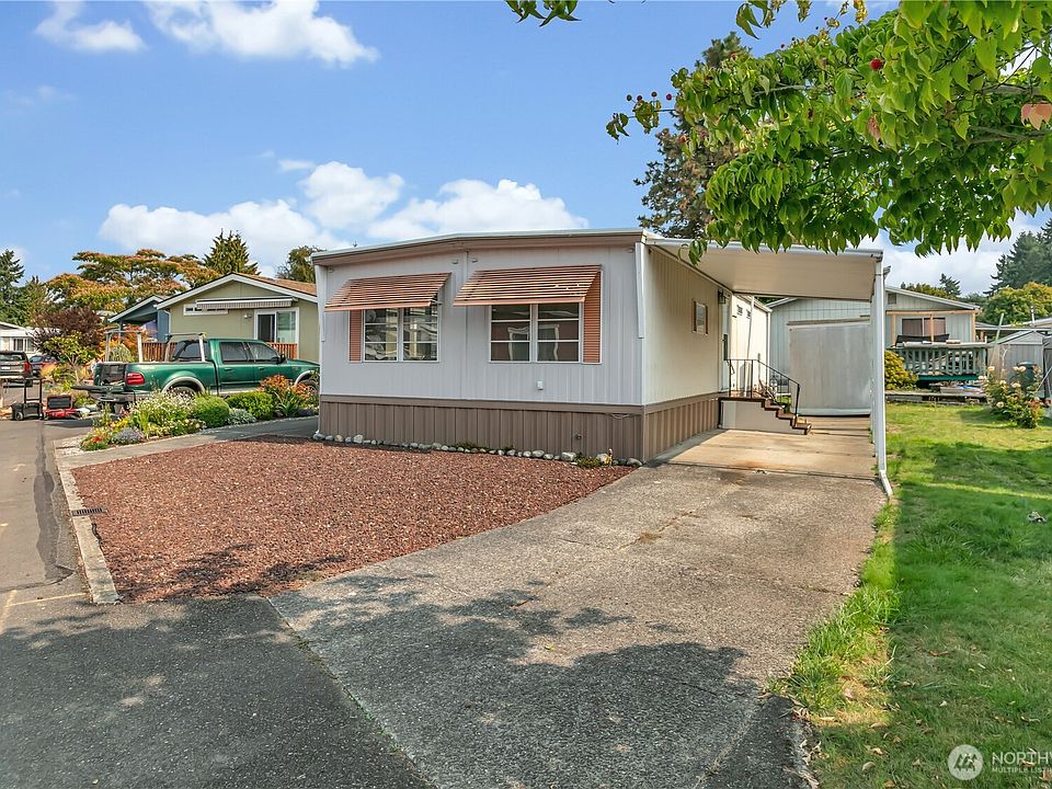 Welcome to Bow Lake, a vibrant 55+ community where convenience meets comfort. This spacious, well-kept remodeled home offers 2 bedrooms, 1.75 baths, plus flexible spaces for dining, office, and a cozy family room. New furnace too! Relax on the covered patio overlooking a peaceful backyard, or enjoy the extra storage with two sheds and covered carport parking. Ideally located near SeaTac Airport, freeways, and Sound Transit, you’ll love the easy access to everything. The recently updated clubhouse features a pool, exercise room, coffee bar, pool table, and gathering space—perfect for making the most of the Bow Lake lifestyle!