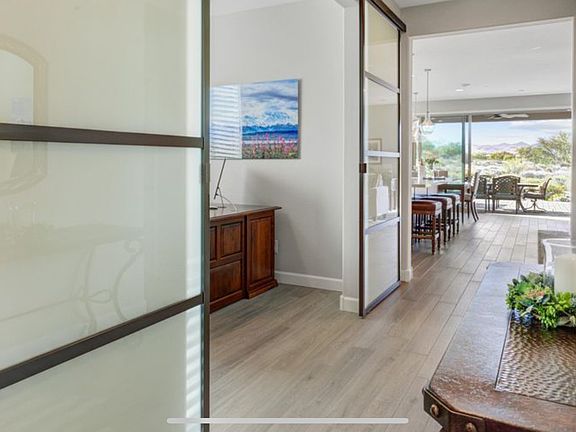 Private covered patioWell sized primary suiteSweeping mountain viewsWall of glassPrivate and elegant en-suiteCustom barn doorsWalk-in closet