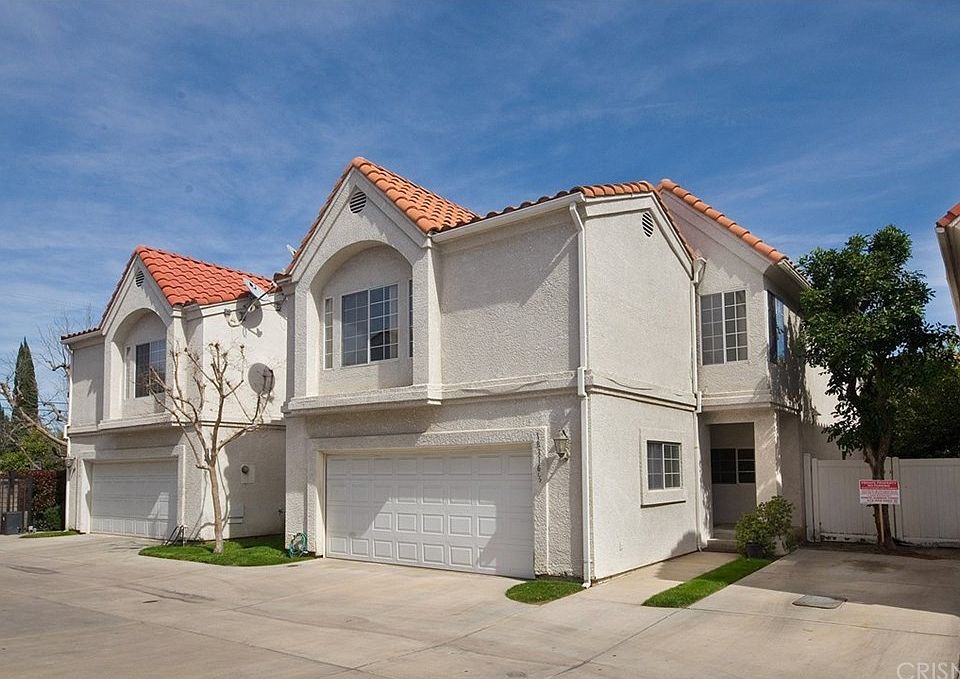 Four bedroom, three bathroom, two story home in gated community. Townhome with no shared walls gives the feel of being in a single family residence. Fire place in living room has ceramic gas logs. Kitchen features Italian porcelain tile and counter tops with a decorative sun tile above the sink. Italian porcelain tile throughout house with laminate flooring in bedrooms. Master suite has two spacious walk-in closets. Motion sensors and security system in front and back areas. Two out door patios create a perfect space to enjoy the incredible Los Angeles weather. Backyard also features: natural gas BBQ, programmable water system, orange, lemon, grapefruit, and avocado trees, and raised garden beds.