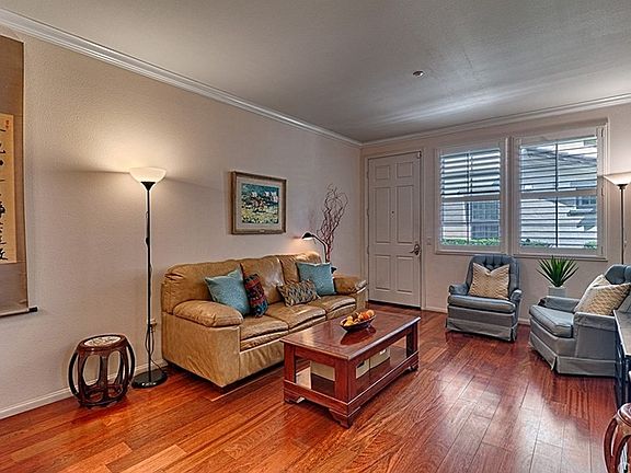 Beautiful upgraded ground level corner condo is located in one of the most desirable gated senior communities in Cerritos. This formal model is built in 2007. It features gorgeous Brazillian Oak hardwood flooring, custom plantation shutters and crown moulding throughout! An open and good size living room greets you as you enter the home. The roomy dining area is off the upgraded kitchen which features marble flooring and tiled back splash, gas stove, recess lighting and track lights illuminating the kitchen bright and light. The bright and airy Master bedroom features two large windows and two large closets. The 2nd bedroom has beautiful built-in wall unit can be used a guest bedroom or an office. One and a half upgraded bathrooms are off the hallway which has direct access to the 1-car garage. The convenient inside laundry has built-in shelves and a linen closet next to it. The community is well maintained and features a spa, gorgeous court yard, beautiful landscaping, and spacious clubhouse - ideal for entertaining guests and private gatherings. The setting is so serene, quiet and safe that it is a sure place to retire in style and a peace of mind. At least one Buyer must be 62 or older and must be owner occupied (not rent out). There is no income qualification required for this unit. It is conveniently close to freeway, Cerritos Town Center, Performing Arts Center, shopping, markets, restaurants, and movies.