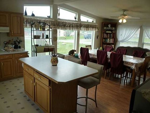 Close in, 1 acre home w/ very beautiful manufactured home with an open plan. Level entry with no stairs & room for a shop! Expansive kitchen w/ large center island, lots of beautiful cabinets and a massive dining area. Cathedral ceilings, huge master suite, gas fp in oversized living room, new laminate flooring and oversized mud room. Home is on a well with 2 sheds & a double car port. FHA, VA, Conv Financing.