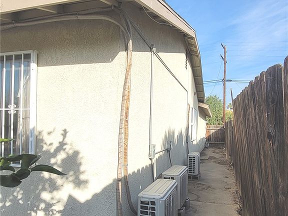Nice single house 3 bedrooms 2 full bathrooms (including 1 master suite) total living area 1,102 sqft (public records) built in 1991. Large backyard good for planting. Cozy living room with cathedral ceiling and fireplace. Spacious kitchen with pantry and granite counter top. Bright and airy dining area off gourmet kitchen. Split air-conditioner and heater for each bedroom and living room. Tile floor in all bathrooms and kitchen. Wall to wall carpeting in all bedrooms, living room and hallway. 2 car attached garage with automatic door opener and laundry hookup. Desirable location close to shopping center and easy access to University of California Riverside or downtown Riverside. Property sold as is condition.