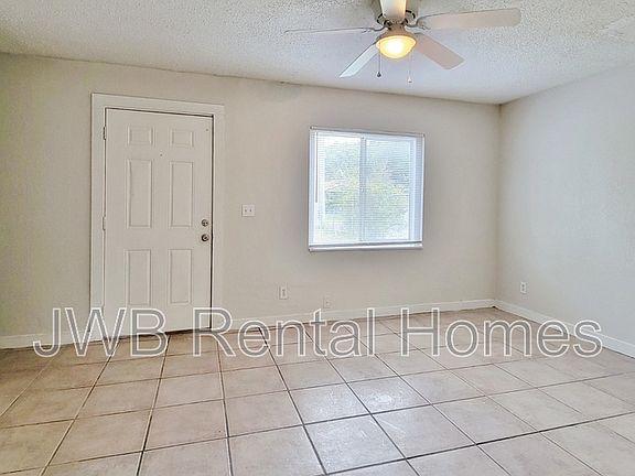 This Northside town home features an open floor plan with tile and wood-look vinyl flooring, hardwood cabinets, and a functional kitchen with a refrigerator and electric stove/oven. A porch welcomes you in, while the yard and patio offer easy outdoor relaxation. Ceiling fans and central flow keep the space comfortable, and washer/dryer hookups add convenience. Near Lonnie Miller Park, UF Health Jacksonville, and Gateway Town Center, it fits seamlessly into daily life.