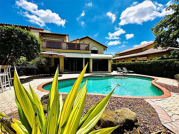 Stunning 3-bedroom, 3-bathroom home with a pool and jacuzzi, offering lake and golf course views. This beautiful property features impact windows, high ceilings, and abundant natural light throughout. Recently renovated bathrooms and elegant marble floors add. Located in a gated community, the home includes a spacious 2-car garage and a long driveway for additional parking. Open floor plan perfect for entertaining and watch the sunset across the golf course. Conveniently close to freeways and restaurants for easy access to everything you need.