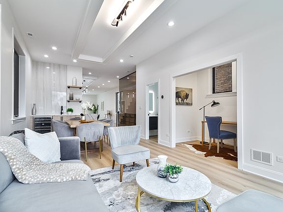 Welcome to 1832 N. Kimball, a stunning new construction luxury 2-flat in the heart of Chicago's sought-after Logan Square neighborhood. This meticulously designed property offers an exceptional opportunity for both homeowners and investors. Unit A (Owner's Duplex): Featuring 3 spacious bedrooms, each with its own ensuite bath, plus an additional powder room. The open-concept floor plan is ideal for entertaining, with a chef's kitchen boasting quartz countertops, a waterfall island, premium ZLINE stainless steel appliances, and a walk-in pantry. The expansive living and dining areas feature elegant coffered ceilings and wide plank flooring. Relax in the luxurious primary suite, complete with a fireplace, dual walk-in closets, and a spa-like bath featuring a soaking tub, glass-enclosed walk-in shower with dual heads, and double vanities. Enjoy breathtaking city views from the massive rooftop deck, perfect for entertaining with gas and water lines for easy outdoor dining. Garden Unit (In-Law Suite or Rental): This well-appointed unit includes 2 bedrooms, each with an ensuite bath, an open floor plan with a modern kitchen featuring quartz countertops and stainless steel appliances, and a bright, airy living space. A separate entrance and private laundry make this unit ideal for guests, extended family, or rental income. The property also features a fully fenced yard and two rooftop decks, including a garage rooftop deck perfect for summer gatherings. With separate utilities and HVAC systems for each unit, privacy and convenience are ensured. Prime Logan Square Location: Just steps from the Healy Metra stop, you can reach downtown Chicago or O'Hare International Airport with ease. The vibrant Logan Square community offers award-winning restaurants, trendy cafes, boutique shopping, and the beloved 606 Trail. Enjoy the renowned Logan Square Farmers Market and easy access to Armitage Avenue's dining scene. This is more than a home; it's a lifestyle. Experience the perfect blend of luxury, comfort, and investment potential in one of Chicago's most desirable neighborhoods. Schedule your private tour today!