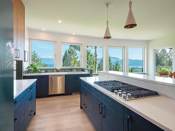Piece de resistance! Extraordinary living at this Ocean View architectural show stopper. Location alert steps to Hopkins pebbly beach. Overlooking sparkling waters framed by majestic mountains this modern west coast style home is elegant and indulging euro influence in every corner. Enhancing the space is a fully contained one bedroom one bath stunning guest suite. Wall to wall innotech high end windows and doors emphasize the supernatural views. Attention to detail, Exceptional craftsmanship throughout. Chefs kitchen will wow you! Visit this home its one to experience... all that is missing is you. Walk to the ferry and a swim...