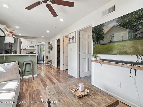 Adorable 2 bedroom, 1 bath ranch home in the heart of Lansing! Many new features in this home! Newer kitchen appliances, and fresh paint in bathroom and living room. First bedroom has added custom shelving. The entire sunroom was updated from carpet to vinyl plank, fresh paint and accent wall. Fenced backyard with a 6ft fence and a nice patio area with updated landscaping. Plants added, newer mulch to front raised bed. Located within walking distance to Hawk Island County Park and the dog park. Close to LCC, MSU and McLaren.