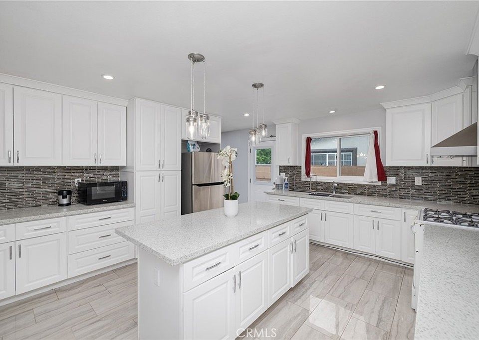 Welcome to a great (mostly) remodeled 4 bed, 1 ¾ bath home in the city of Pomona. Roof and plumbing are 2 years old (Great Bones). Featuring a completely REMODELED KITCHEN with new quartz counters & island, shaker cabinets, matching flooring, and recessed lighting. This home also has an open living room with a gas fireplace and double doors which allows a LOT of natural light in the home. The primary bedroom has DOUBLE CLOSETS and an en suite restroom for privacy. There are good sized yards in the front and back of the home with a covered patio in the back. Centrally located near Phillips Ranch: near parks, restaurants, shopping, and commuter friendly (near 71/60/57 & 10 freeways). This is an entertainer’s delight, and it will NOT last.