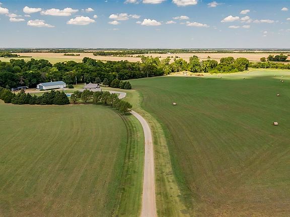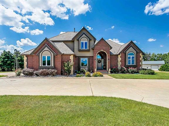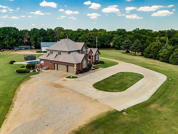 Welcome Home! This majestic serene home on 15 acres has everything you've been looking for! Same owners for over 20 years. High quality, low maintenance construction featuring breathtaking 3/4 brick and stone exterior, new exterior paint, concrete roof and updated windows. Lovely eye-catching estate with 6 bedrooms, 5 1/2 bathrooms, attached 3 car garage plus detached insulated dream outbuilding measuring 75 x 42 perfect for housing all your equipment, hobby needs or create the perfect man cave. Located just 25 minutes from Wichita, this gorgeous wooded acreage and outdoor living experience is exactly what you need! Relax- you have reached your very own private vacation destination! Beautiful refreshing in-ground pool with fountains, updated pool equipment and pergola with landscaped flower gardens. Loads of entertainment area options. Choose from the expansive upper deck with low maintenance composite decking, sturdy cedar beams/posts and aluminum powder coated railing; the shaded covered concrete patio; or the huge sunny patio surrounding the pool. Approx. 2 acres of sprinkled lawn with irrigation system and casement well. Kitchen is amazing and loaded! All new high-end GE black appliance package!! Stove/oven with convection and conventional settings, refrigerator, dishwasher, microwave and trash compactor. Granite island and loads of cabinetry and counter space plus desk and spacious hearth room & eating area with bay window. Formal dining and main floor living room plus lower level family recreation room. Tall ceilings and windows create a grand feel! Two gas fireplaces, one up one down, two washer dryer hook ups (main floor and lower level) and even central vacuum. Three bedrooms and two full bathrooms in upper level. Spacious 21 x 15 Master bedroom is conveniently located on the main level with oversized master bath fit for a king and queen. Double vanity, private water closet, separate shower and tub, updated lighting, solid surface counters and walk in closet. Full walk out basement has two more large bedrooms, 2 full bathrooms, attractive brick fireplace and wet bar. Don't miss the magnificent views of the vast backyard and lovely in-ground pool which has been recently upgraded; new pool liner Oct 2016, new pool cover July 2018, new pool heater May 2019. Close to Lake Afton! Call today to schedule your showing! Hurry, this type of property DOES NOT come on the market often.