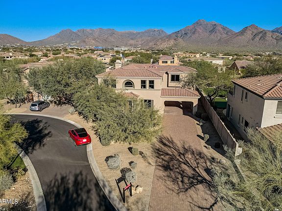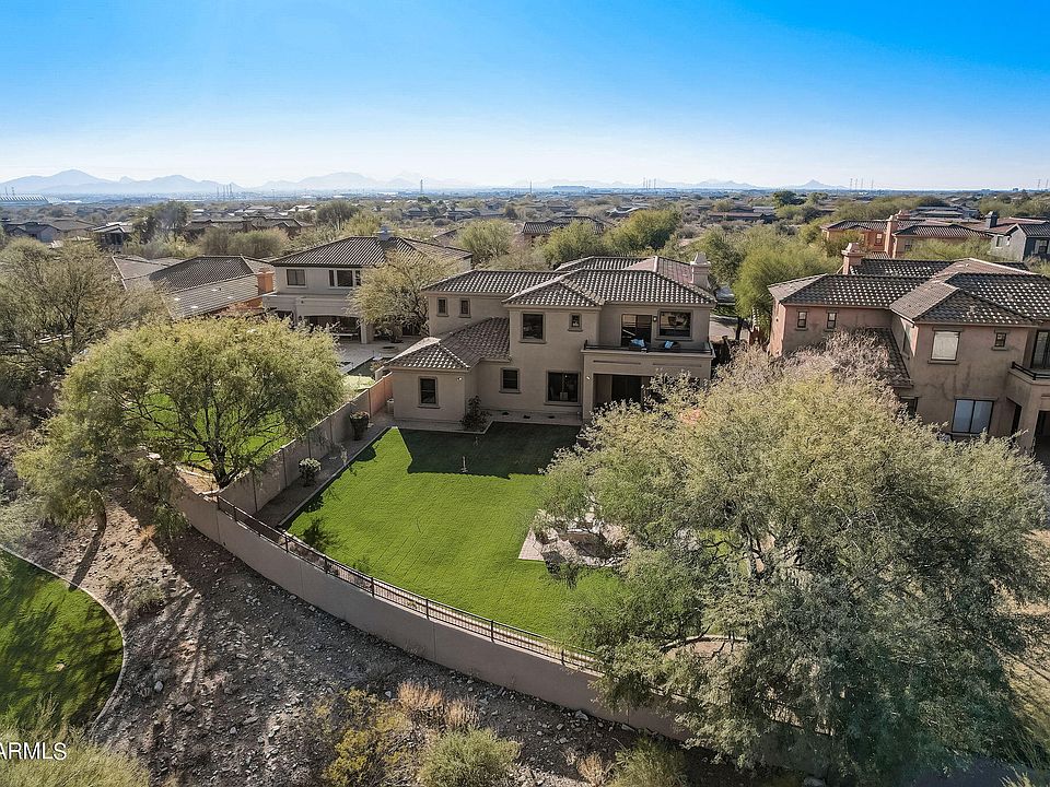 Welcome to this meticulously maintained luxury five-bedroom cul-de-sac home in Windgate Ranch, a coveted North Scottsdale Luxury Subdivision, beneath the serene McDowell Mountains. This Torre model perfectly blends spacious family living with upscale amenities. A generously sized family room, a chef's kitchen with gas stove top, double oven, and granite countertops, formal dining room, office, a relaxing sitting room and informal dining area complete the first floor. Upstairs, is a generous split primary suite with a private patio, ideal for unwinding with a sunset cocktail. Four additional en-suite bedrooms, including a Jack and Jill arrangement, ensure comfort and privacy for all. A large grassy backyard, sets the stage for memorable evenings against the backdrop of breathtaking.. McDowell Mountain sunsets. Enjoy alfresco dining with a gas grill and a welcoming fire pit, perfect for gatherings. Beyond the home, the Windgate lifestyle unfolds with sports courts for basketball, tennis, and volleyball, alongside three pools, a children's playground, and ample community rooms for social events. This residence isn't just a home; it's a lifestyle, offering a harmonious blend of comfort, luxury, and community spirit in one of Scottsdale's most prestigious guard gated neighborhoods.