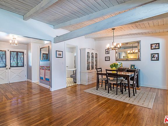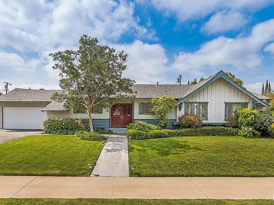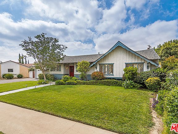 Experience the casual charm of this 4+3 single story home perfectly sited on idyllic tree lined street in quiet Porter Ranch neighborhood. Striking dbl door entry welcomes you to 2,358 sf on well-appointed 11,364sf lot. Hrdwd flrs, beamed ceilings & open spaces enhance the warmth of this suburban gem. DR is perfect gathering spot for meals, while impressive fireplace anchors adjacent LR. Oversized family room offers myriad of design opportunities & presents views of expansive back yrd. Eat in kitchen highlighted by relaxed banquette style seating. Lrg mstr suite wi/ an abundance of closet space & access to outdoors - mstr bath with dbl sinks & tub. This special home also includes solar panels, laundry room & two car garage. The back yard hosts a number of gentle grass filled areas as well as swimmer's pool & generously sized covered patio. Together they combine to create the perfect outdoor space to relax with family & friends.