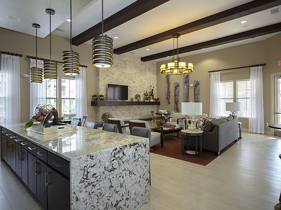 - Exterior features: Carports, Crown molding, Garages Available, Granite countertops, Modern light fixtures, Near George Bush Park, On-Site Maintenance, On-Site Management, Outdoor grilling/picnic area, Package Receiving, Pet Park, Private storage units, Stainless steel appliances, Townhome Style Apartments, View Type: Model Home to View, Yoga Studio