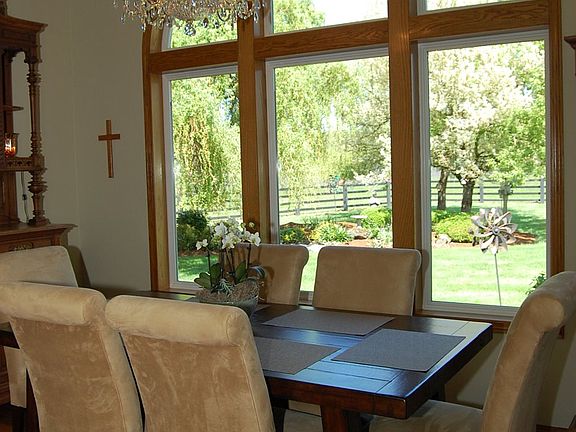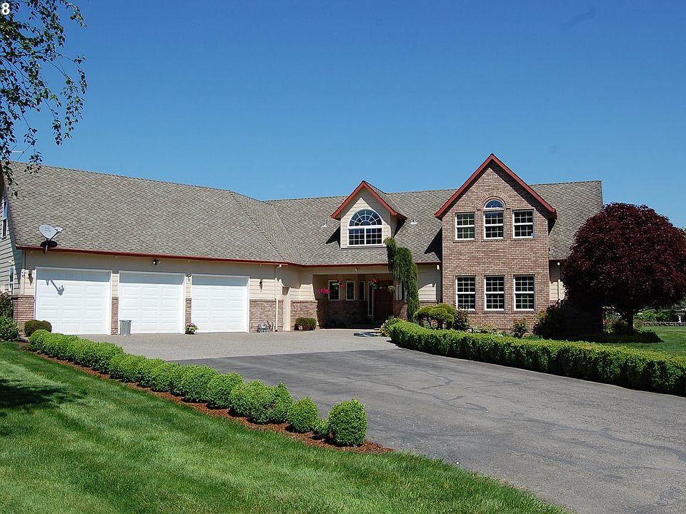 Stunning 80AC fenced estate. Potential to register PRIVATE AIR STRIP. 4075SF, 3BR, 3.5BA delight. Picture windows frame gorgeous views w/partial Mt Hood. MASTER ON MAIN w/bath suite & nook. Remodeled kitchen w/granite counters, beautiful hardwood flrs & SS appl. Slate fireplaces Family rm w/cozy wood stove. 2 large upper bedrooms. 2 full upper BA. Huge bonus room & office loft. 76X64 8-stall barn/SHOP 220, H2O,concrete flrs. Fruit trees
