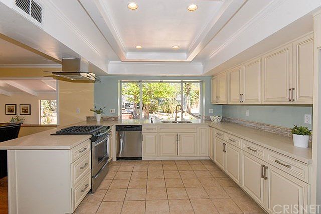Remodeled Porter Ranch single story house, It has its own separate entrance from the front and back of house. Chef's kitchen with new antique cabinetry & Caesar Stone counter tops featuring a peninsula overlooking the open floor plan and backyard. This house has 3 bedrooms plus an 2 bathrooms, both have double sinks. Wood floors throughout, fireplace, 2 car detached garage, storage unit, recess lighting. A remodeled backyard with a large deck and beautiful fire pit it's a place to entertain. Spanish tile roofing & dual pane windows. A den area overlooking rear yard w/plenty of access & is light & bright. Laundry room and pantry space. The newly remodeled Guest Quarters (permitted) with 2 Additional Bedrooms, open kitchen-livingroom and a Bathroom. Close to freeway, shopping & public transportation. Granada Charter High School.