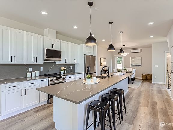 Stunning new multi-home community developed by local Shoreline resident builders. This three bedroom, two and 3/4 bath home is targeting 4-Star Green Built and just a short walk away from the newly opened 185th St Shoreline Light Rail Station. Expansive floorplan throughout. Custom quartz countertops in your entertainer's kitchen with SS appliances, convection cooking, as well as a large island with seating for four. Two upper-level bedrooms with vaulted ceilings and gorgeous full baths. Ductless HP mini-splits for year-round comfort, tankless water heater, and fire-sprinklers. You'll appreciate this quiet residential street, the award-winning Shoreline schools, and Cromwell and Shoreline Parks. 2 units in contract, 3 still available.