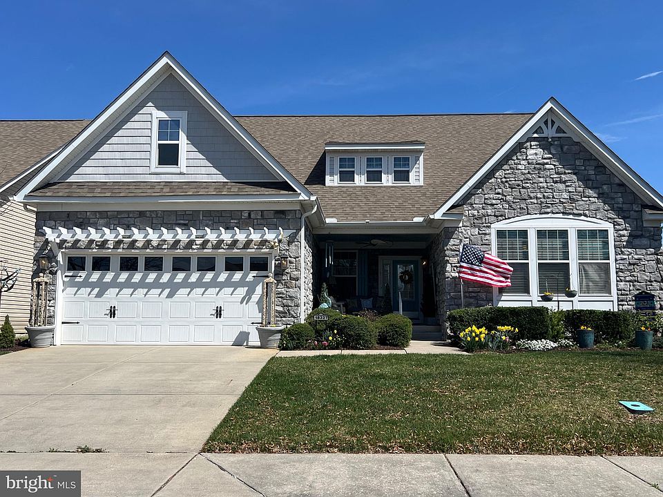 Impressive stone front coastal home in the gated community of Nassau Grove with 3,687 Sq. ft! Located in a quiet cul dec sac that offers plenty of parking. This is the first Cottonwood floor plan offered for sale in over 5 years. Bright open floor plan with many recent updates: new furnace, central air, hot water heater, remodeled guest bathroom, and all new exterior fixtures. There is an upscale gourmet kitchen with gas cooktop, double ovens, island, granite counters, custom wood backsplash and pullout shelves on all lower cabinets. There is a large laundry room with new tile, stainless steel utility sink, and built-in wine cooler. This open floor plan features a formal dining room with tray ceiling & crown moldings, great room with vaulted ceilings, & wall of windows. double sided fireplace, sunroom with motorized shades, and main floor primary retreat with tray ceiling & crown moldings. Upstairs features a gigantic loft with sleeping alcove, guest bedroom, and full bath. Off the sunroom is a private deck and lush landscaping with over 50 species of flowering shrubs and trees, The beautiful yard was designed to have flowers blooming from Spring until late fall. There is a full basement has a large game room, lots of room for future expansion with a plumbing rough-in. This amenity rich neighborhood with a club house, fitness center with kitchen, bar, , lap pool, children's Pool, bocce Ball, tennis, volleyball, outdoor fireplace and lawn care included! All within minutes to the beaches, Henlopen State Park, downtown Lewes and All Restaurants and Shopping. This is an amazing location! This home has a 2.375 % assumable VA interest rate for Veterans!