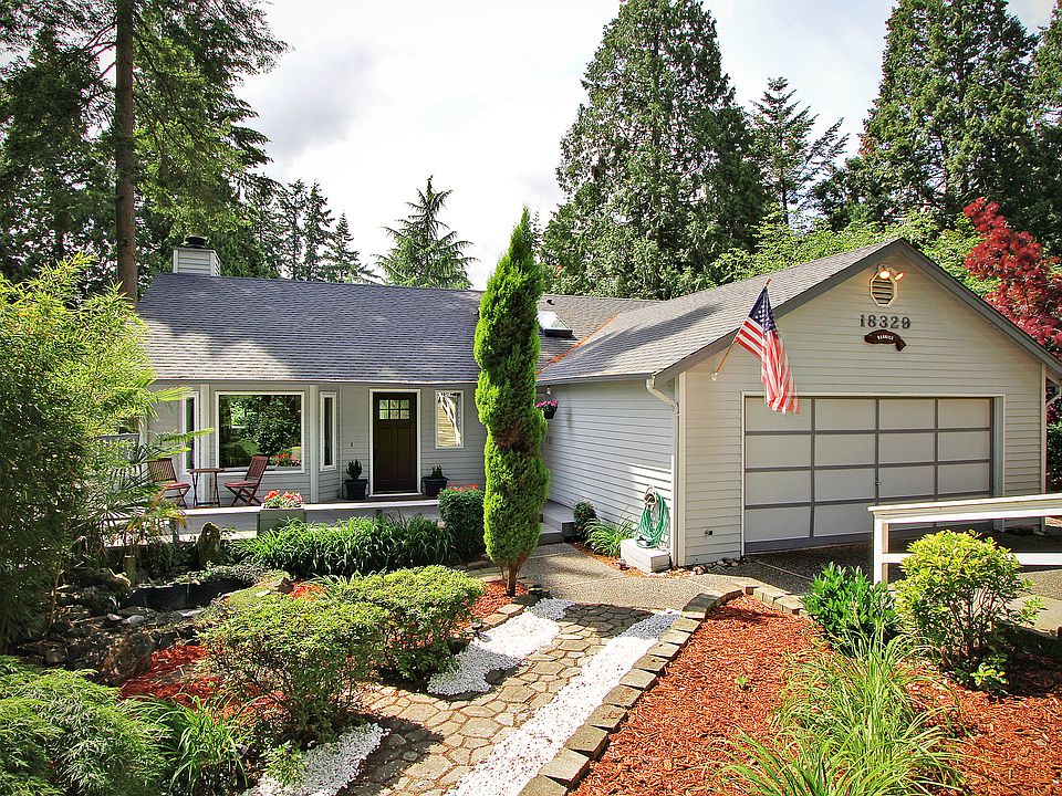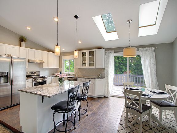 TOUR THIS HOME ON YOUR PHONE: TEXT- RUSH8037 TO- 878787 Great Woodinville location for this light, bright daylight rambler with open floor plan and skylights throughout. Gorgeous kitchen remodel with white cabinets, mosaic backsplash, large island, granite counters and stainless appliances. Like to entertain? Built in wet bar downstairs! Separate 2nd kitchen, perfect for mother-in-law or rental. Park like lot with mature landscaping, water feature, fire pit, outbuilding and vineyard. Large wrap around deck, perfect for summer BBQs and more! Newer roof and paint. Sits nicely at the end of quiet cul-de-sac. Northshore schools!