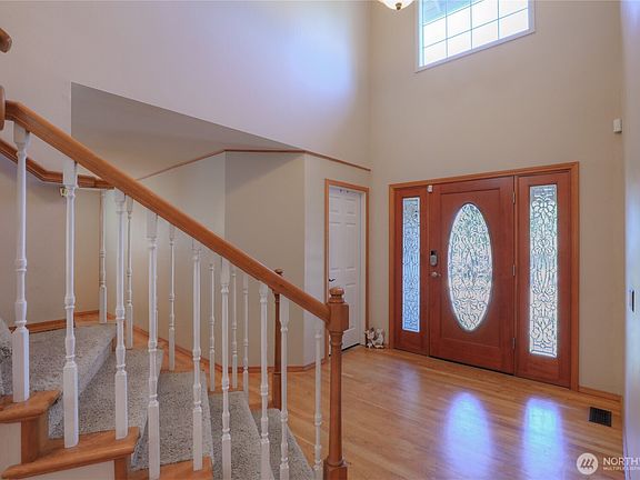Nestled along the 4th hole, with a main floor primary suite, and new A/C heat pump, this beautifully maintained home offers a bright and spacious layout perfect for both everyday living and entertaining. The main level includes a versatile bonus room and a generous primary suite with a walk-in closet, 3/4 bath, and direct access to a serene deck with a hot tub overlooking the beautifully landscaped backyard with golf course views. The kitchen and dining area features granite countertops, stainless steel appliances, a beverage fridge, and expansive storage. Gleaming hardwood floors and a gas fireplace create a warm, inviting atmosphere. Upstairs, you’ll find a rec room, three additional bedrooms with tons of closet space, and a full bath.