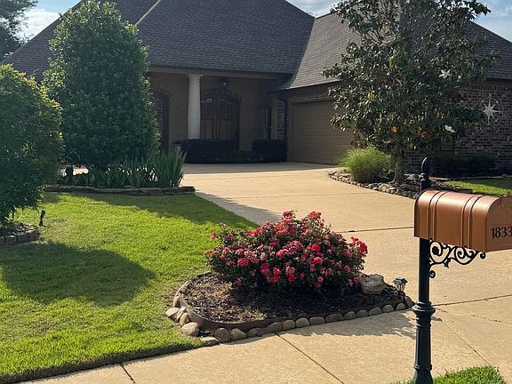 This one has it all. Tall ceiling with interior brick arches, brick fireplace & hearth with Cyprus mantle. Kitchen with walk in pantry. Main Suite with large bath. extra large walk-in closets with built-ins. Large corner whirlpool tub with tumbled stone edging, tiled ceramic shower. Large utility room with folding counter space, lots of cabinets. Office has built-in desk, with wood, glass door. Front has 2 gas lanterns, beautiful stained double front doors. Front & backyard is landscaped with irrigation system. Outdoor features with entertaining area. Large patio, fully fenced, gutters throughout. Community pool, sidewalks throughout neighborhood. All window treatments remain. Call your FAVORITE REALTOR TODAY.