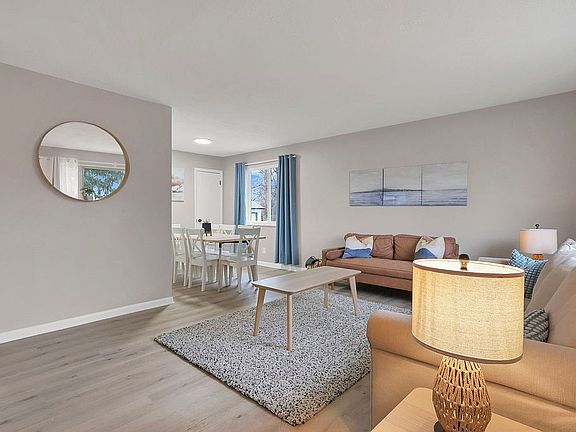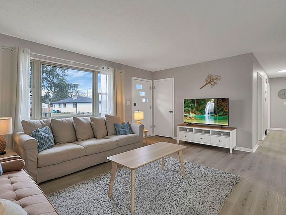 The renovated kitchen boasts modern cabinets, sleek countertops, and updated appliances. Freshly updated bathrooms and generously sized bedrooms provide comfort and style throughout.